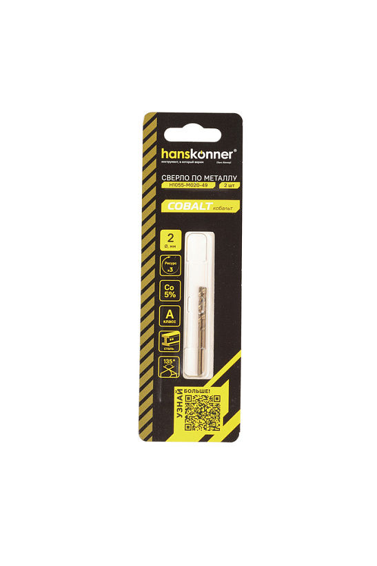 Сверло по металлу COBALT 2,0х49мм 2 шт. Hanskonner
