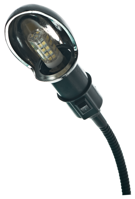 - Гибкая металлическая стойка позволяет изменять направление подсветки в любую сторону из любого положения;