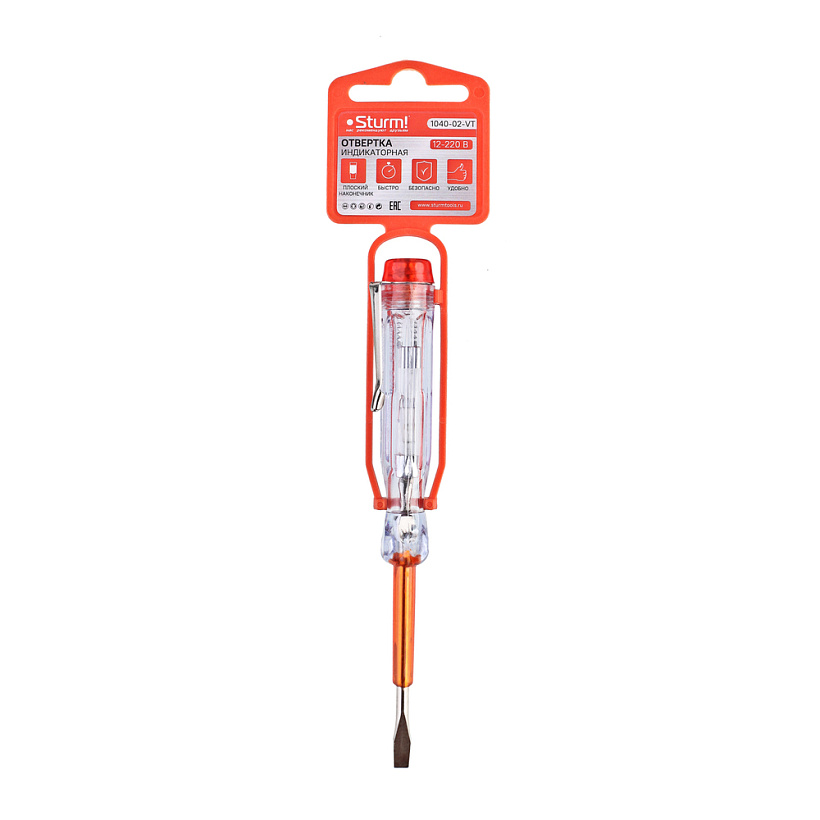 Рукоятка отверток-индикаторов изготовлена из прозрачной ацетилцеллюлозы и хорошо лежит в руке. На рукоятке отвертки-индикатора 1040-02-VT присутствует крепление к карману или ремню для более удобной переноски. Стержень выполнен из высококачественной стали и покрыт изоляцией по всей длине, имеет прямое жало.