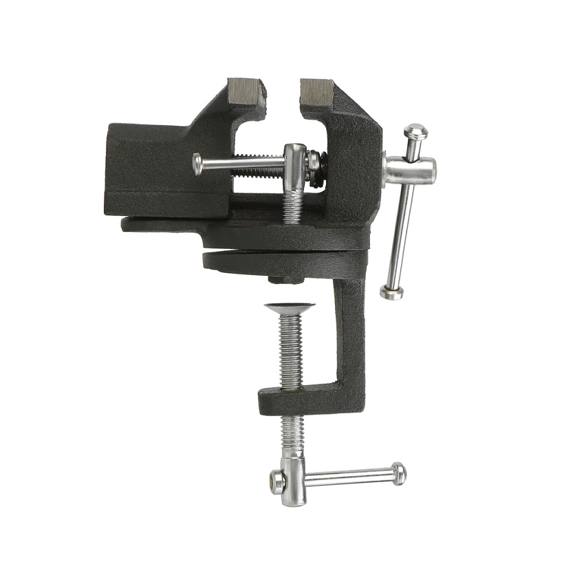 Установка тисков на стол осуществляется с помощью струбцины и универсальна для большинства рабочих поверхностей.