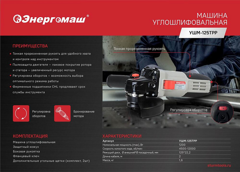Болгарка (УШМ) Энергомаш УШМ-125ТРР