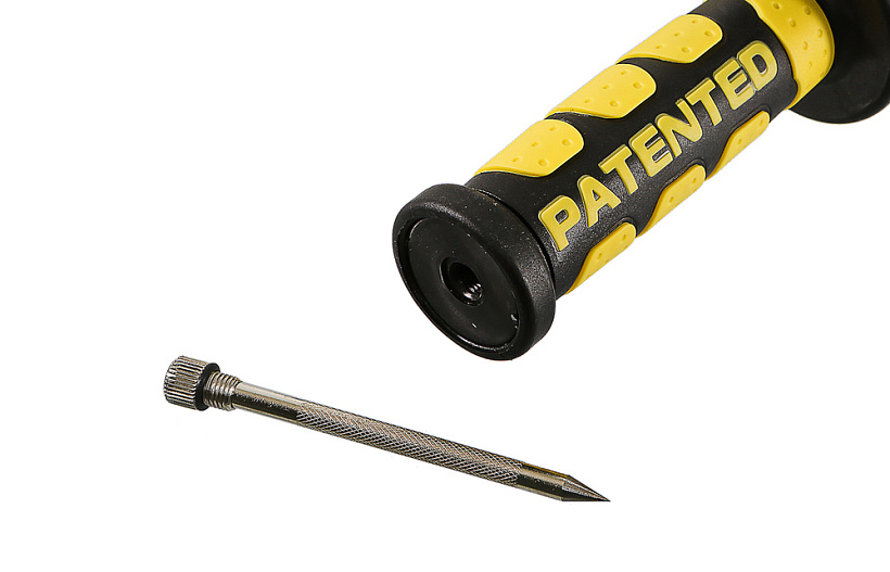 Дополнительная двухпозиционная рукоятка наклонена к корпусу редуктора для повышения удобства рабочего процесса. Боковая рукоять инструмента оснащена разметочным карандашом с твердосплавным наконечником. Карандаш обеспечивает легкое и четкое нанесения разметки на поверхность любой сложности - в том числе ржавую, влажную или маслянистую.