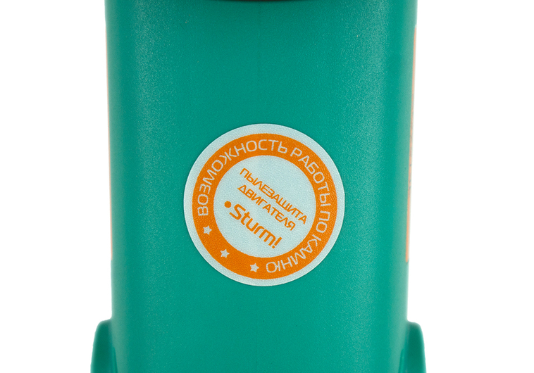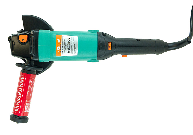 Sturm AG9514Е – универсальная болгарка (УШМ) бытового назначения под рабочий диаметр диска 125 мм. Имеет компоновку с длинной рукоятью и рассчитана под хват двумя руками. Основное преимущество данной компоновки – лучший контроль и удобство использования инструмента при зачистных и шлифовочных операциях. Работу в местах с трудным доступом призван облегчить низкопрофильный корпус редуктора клиновидной формы. Особенность модели – функция электронной регулировки оборотов (4000 – 11000 об / мин), благодаря которой достигается оптимальный подбор частоты вращения в зависимости от типа используемой оснастки и обрабатываемого материала. Для обеспечения высокого ресурса инструмента особое внимание уделено наиболее нагруженным элементам конструкции: электромотор покрыт несколькими изоляционными слоями термостойкого лака и имеет дополнительную защиту от пыли и абразивных частиц, благодаря закалке, повышенной прочностью обладают шестерни редуктора. Кроме того, применение шестерен с конической формой зуба позволило снизить уровень шума при работе. Инструмент прост в обслуживании и эксплуатации. Предусмотрена функция быстрого доступа к щеткам, позволяющая их замену без разбора элементов корпуса. Для удобства пользователя модель снабжена быстросъемным защитным кожухом, который надежно фиксируется при помощи специального зажимного рычага – это дает возможность при необходимости быстро изменять положение кожуха, не прибегая к помощи вспомогательного инструмента, а также удобной патентованной рукоятью со специальным твердосплавным карандашом для нанесения разметки на поверхности любой сложности, включая ржавые, влажные и маслянистые.