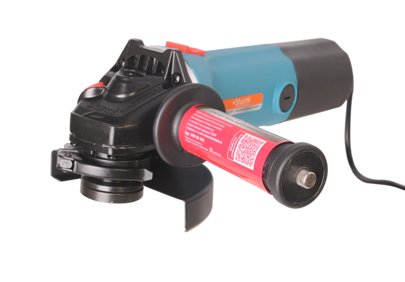 Об отличной приспособленности к зачистным и шлифовочным работам свидетельствует отдельные конструктивные решения: вал шпинделя установлен на двух шарикоподшипниках, забор воздуха в двигатель производится с торцевой части корпуса (со стороны сетевого кабеля), за счет чего значительно снижается возможность попадания в двигатель пыли и абразивных частиц, корпус редуктора вместо привычных двух имеет три гнезда под крепление дополнительной рукояти. Однако, ключевая особенность, обеспечивающая универсальность применения – наличие константной электроники, которая позволяет поддерживать одну и ту же частоту вращения на валу шпинделя, как на холостом ходу, так и под нагрузкой, препятствуя просадке по оборотам. Важной особенностью Sturm AG9512P является система плавного пуска – она снижает пусковые нагрузки на двигатель и предотвращает рывок инструмента в момент включения. Модель проста в эксплуатации и обслуживании. Снабжена быстросъемным защитным кожухом, надежно фиксирующимся при помощи специального зажимного рычага, не прибегая к вспомогательному инструменту, а также удобной обрезиненной патентованной рукоятью с твердосплавным разметочным карандашом внутри. Предусмотрена возможность быстрого доступа к щеткам, что существенно упрощает процесс их замены, так как исключает демонтаж элементов корпуса.
