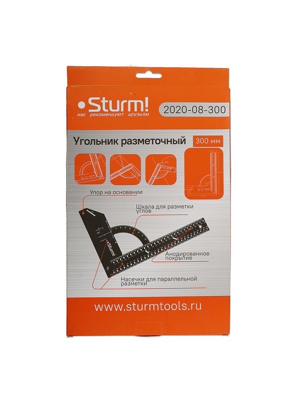 Угольник 200x300мм, разметочный, со стоппером, , Sturm!