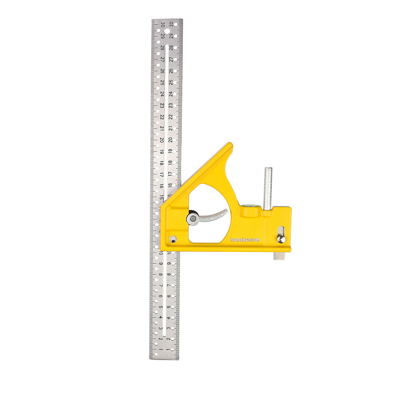 Угольник 300мм, уровень, выдвижной упор, чертилка, hanskonner