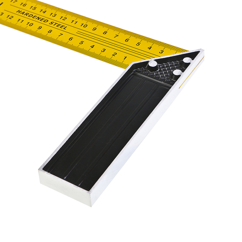 Металлический угольник с окрашенной поверхностью и двухсторонней разметкой полотна—предназначен для разметки и проверки прямых углов, а также для проверки угла 45 градусов при обработке и сборке изделий. Шкала нанесена гравировкой с двух сторон, что добавляет удобство при работе. Угольник обладает прочностью и долговечностью, так как полотно изготовлено из закаленной нержавеющей стали, а рукоятка из алюминия. Широкое основание и удобная алюминиевая рукоятка упрощают работу с инструментом.