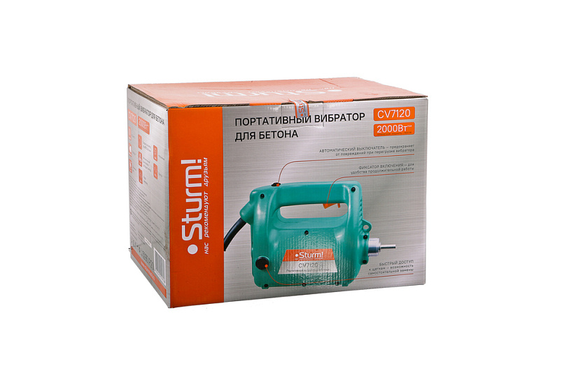 Вибратор портативный глубинный Sturm! CV7120 предназначен для уплотнения бетонных смесей. Его используют при укладке смеси в монолитные конструкции с арматурой, также применяется при изготовлении бетонных и железобетонных изделий в гидротехническом строительстве.