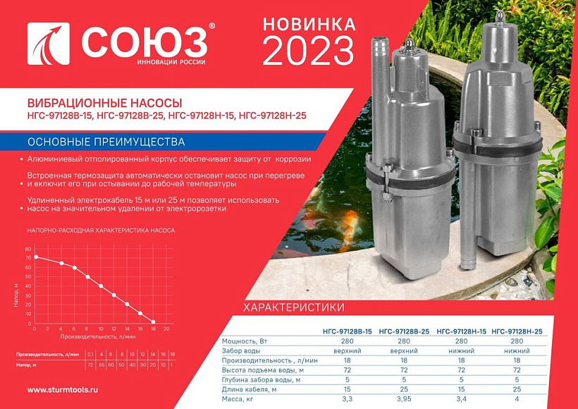 Насос вибрационный погружной СОЮЗ НГС-97128Н-15