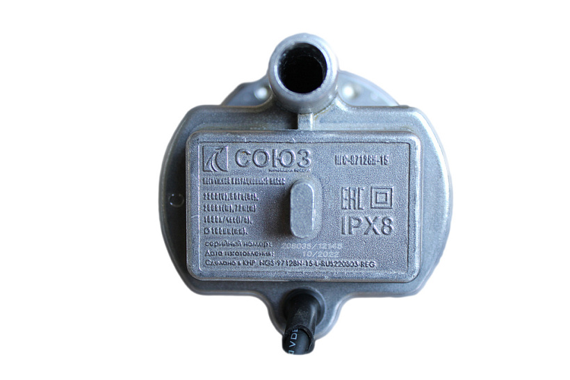 Насос вибрационный погружной СОЮЗ НГС-97128Н-15 с нижним забором воды предназначен для забора чистой воды из скважин диаметром от 100 мм и колодцев, а также из различных водоемов и емкостей.