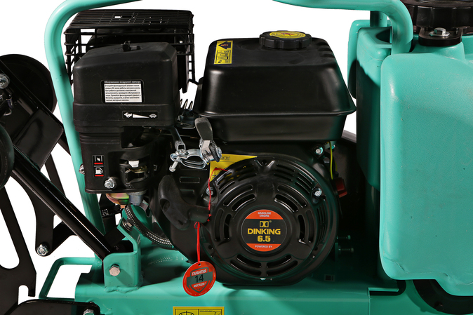 Компактная виброплита весом 100 кг оснащена 4-х тактным бензиновым двигателем OHV марки Dinking мощностью 6,5 лс. Преимуществами двигателей марки Dinking являются: