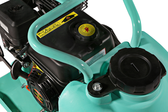 В конструкцию виброплиты вмонтирована система подачи воды на трамбовочную плиту с вместительным баком 13л.