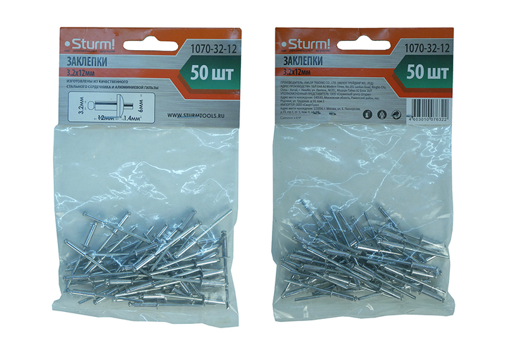 Заклепки 3,2 х 12 мм, 50 шт. Sturm!