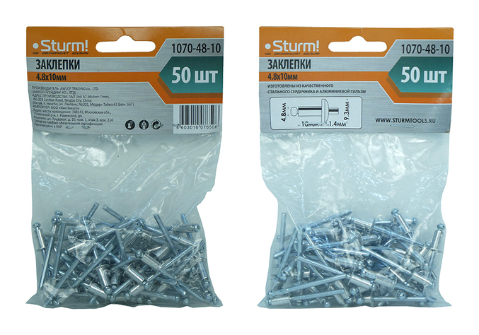 Заклепки 4,8 х 10 мм, 50 шт. Sturm!