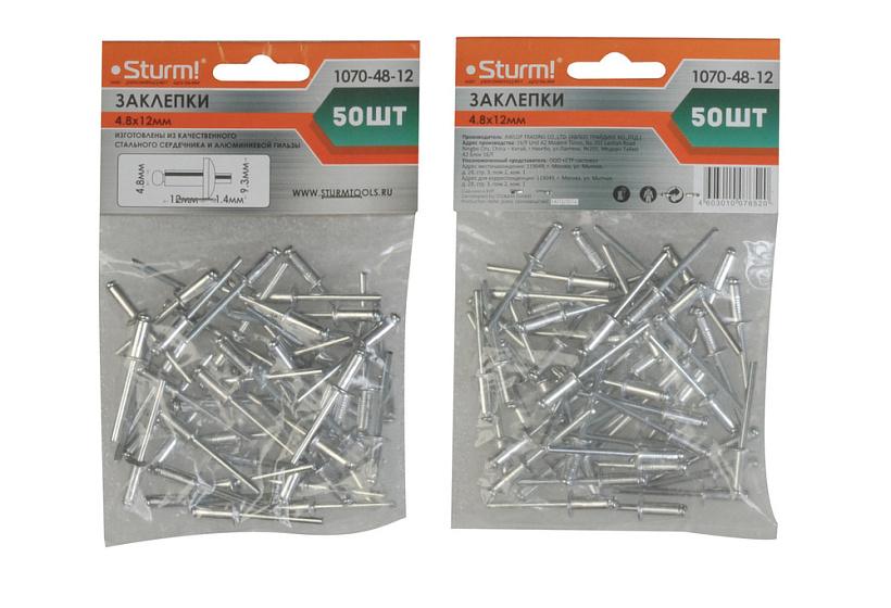 Заклепки 4,8 х 12 мм, 50 шт. Sturm!