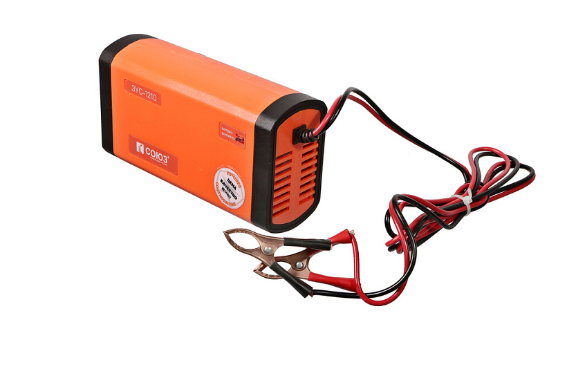 СОЮЗ ЗУС-1210 — портативное инверторное зарядное устройство. Предназначено для автоматической зарядки как классических свинцово-кислотных, так и AGM (технология Absorbent Glass Mat), а также гелевых (GEL) аккумуляторных батарей напряжением 12 В и емкостью от 30 до 100 Ач. Модель выполнена в компактном корпусе — благодаря своим минимальным габаритам очень удобна в хранении и транспортировке. Устройство предельно простое в эксплуатации и не требует специальных навыков — пользователю достаточно лишь подключить провода с зажимными клеммами к аккумулятору, соблюдая полярность, и включить прибор в сеть. Контролировать процесс зарядки помогает световая индикация: красный цвет индикатора — аккумулятор заряжается, зеленый цвет индикатора — аккумулятор уже заряжен. Ток зарядки СОЮЗ ЗУС-1210 составляет 10 А. Для обеспечения безопасности пользователя в случае любых внештатных ситуаций модель оснащена необходимым комплексом защиты: от перегрева, от короткого замыкания, от неверной полярности подключения.